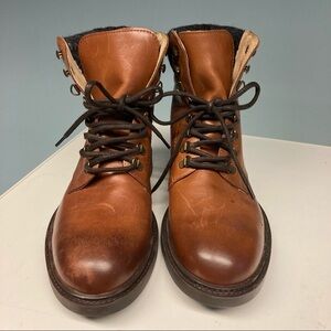NOBRAND ™ There is No Brand Like NoBrand Lace Up Leather Lightly Distressed High polish boots. Comfortable. Chic. Rugged. Chunky sole for good grip. Comfort padding on the back of the shaft. Eyelets and hook closure. Boots Sz 9. Outer sole: 12” EUC.