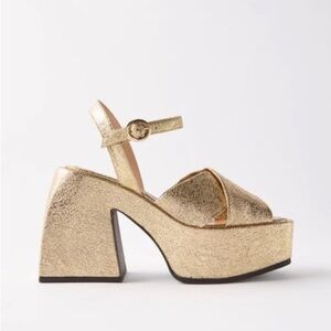 metallic-effect chunky sandals from Nodaleto featuring gold-tone, leather, metallic effect, open toe, mid block heel and buckle fastening.