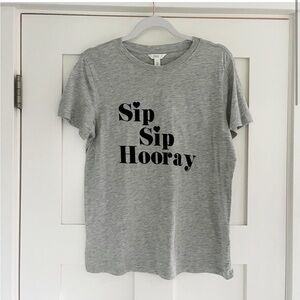Celebrate in style with this cute "Sip Sip Hooray" graphic T-shirt.