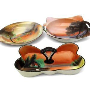 NORITAKE Sunset and Landscape Scene Dishes and Bowls Set of 3 Japan Vintage