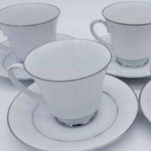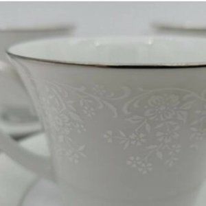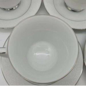 I have these three NORITAKE TAHOE 2585 Cup & Saucer Set of 3 in Excellent Condition. These are white in color with a white embossed pattern on the border between beautiful silver lines (Zoomed images available)