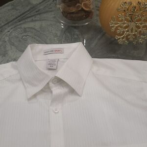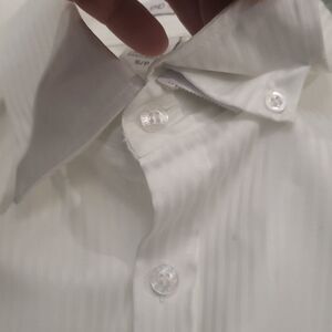 Beautiful new white 100% cotton shirt ,great white silky pattern size on tag s,more m fit pit to pit about 20 L 28 in.