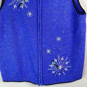 Women’s retro 90’s metallic shimmer sapphire blue Northern Reflections Knit Embroidered Wool Blend Sweater Vest.