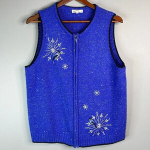 NORTHERN REFLECTIONS 90’s Vibe Sapphire Knit Embroidered Wool Sweater Vest L