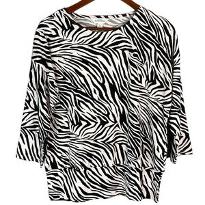 NORTHERN REFLECTIONS NWOT Pale Pink Black Zebra Print Pullover Top 3/4 Sleeve M