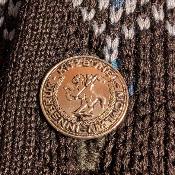 NORVYK cardigan Sz S 100% WOOL METAL ENGRAVED BUTTONS STUNNING VINTAGE CANADA