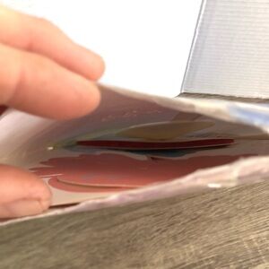 New old stock- opened but not used. It’s very hard to take a picture of the inside but it has not been punched out of its original sheets, and the tissue paper accordion looks unopened.