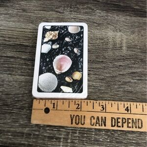 Set of two playing cards with seashell design. Features a mix of pink, white, and tan colors.