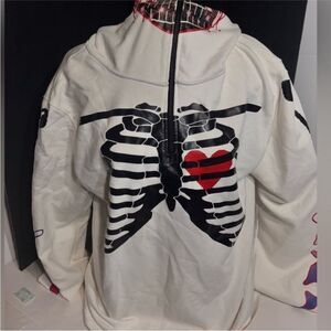 Stylish skeleton graphic hoodie in light gray. Perfect for casual wear or halloween ( dark academia/ horror)