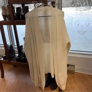 **NOT AVAILABLE - DON’T BUY** Stylish cream/off white long ribbed cashmere cardigan by Nap Loungewear. Perfect for layering.