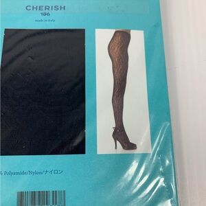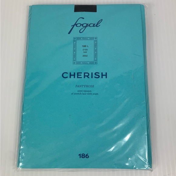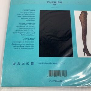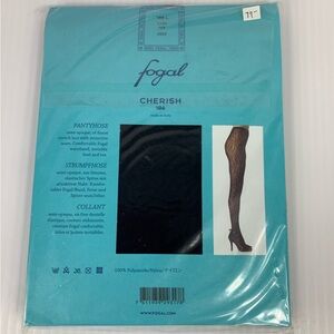 Fogal Cherish 186 Pantyhose L 2100 Black 2552 Semi-Opaque Lace with Seam Italy