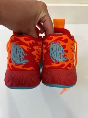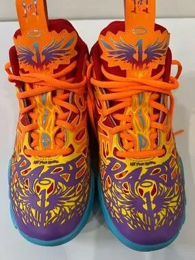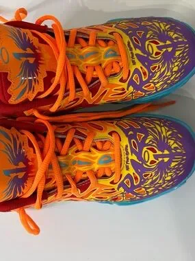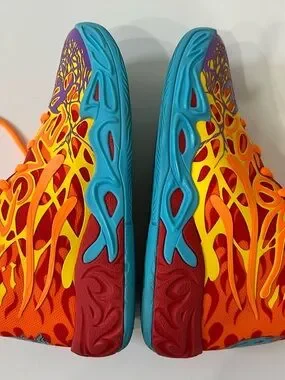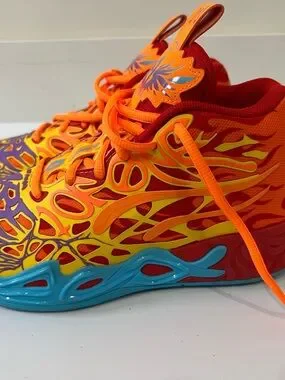 Inspired by the narrative of "BE MELO", the MB.04 is designed to transform you into Melo on the court. The unique knit upper pattern, along with raised 5D printing elements, wraps around the shoe from toe to heel adding breathable support with Melo flare. This drop centers around the mythical creature roaming the Melo universe, The Phoenix. The fiery graphic along with the red and yellow colors help to embody this concept, along with cool blue pops.