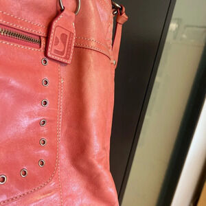 Soprano leather purse larger in size- bright coral pink leather in great condition