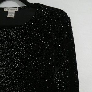 NOTATIONS | medium | Stunning Black Velour Glittery Long Sleeve Top | NWOT
