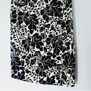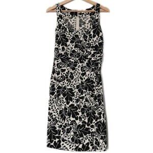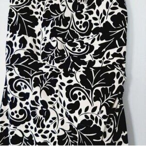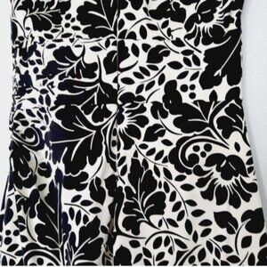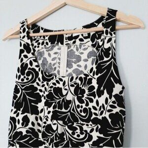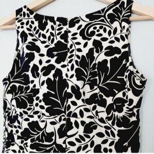 • Form fitting sleeveless scoop neck dress in black and white flower print back zipper closure.