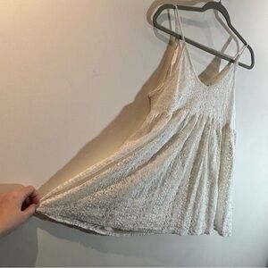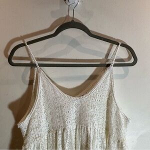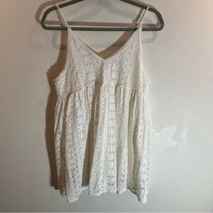 NOUL Sz O/S Baby Doll Crochet Layer Spaghetti Straps Lined Tank Top Blouse. Fresh, feminine, girly, cottagecore, granny core, bohemian, boho. , coastal, nautical. P2P: 18” Length: 28”