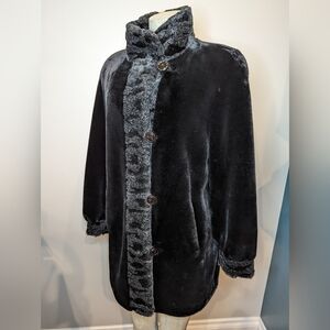 NOVELTI Black Modacrylic luxury cuddly soft Faux Fur Coat. Size 5/6. Classic and luxurious styling. single button closures.