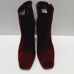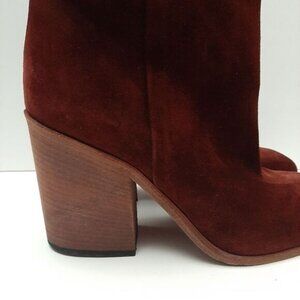 NOW Made in Italy Suede Slip-On Ankle Boot Block Heel Maroon Wine Red Sz Euro 40