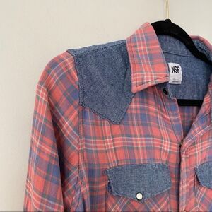 NSF Plaid Two Tone Pearl Button Down Shirt