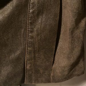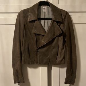 NSF Petite brown leather jacket, well loved. Some signs of wear and spotting, one small rip (see photos) All Buttons and zippers are working, 2 front pockets, (fits like a xsmall) great condition