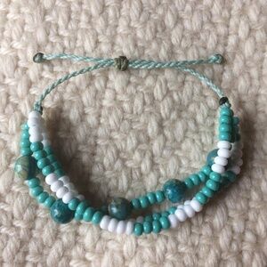 This bracelet is made with czech glass seed beads and turquoise dyed howlite stone beads. The thread used is waxed polyester, which is waterproof so the colour won't run or fade in the sun or water. They are also adjustable so they will fit all wrists! This is handmade by me.