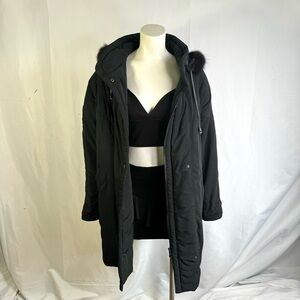 NUAGE BLACK PARKA COAT OVERSIZED JACKET FAUX FUR VINTAGE COAT XS