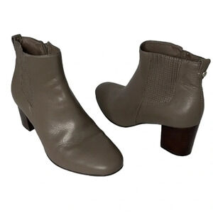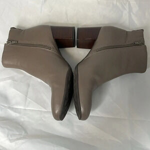 NURTURE Palie Taupe Brown Leather Over The Ankle Booties Stacked Chunky Heel 9.5