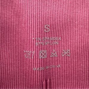 In excellent condition. Stylish pink leggings by NVGTN. High-waisted design with ribbing at the waistband. Perfect for working out. 25" inseam.