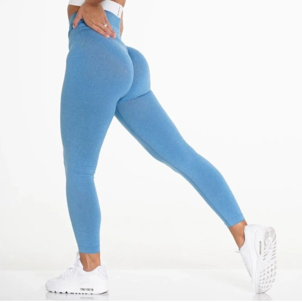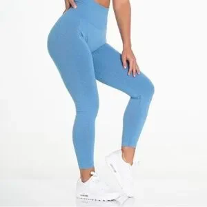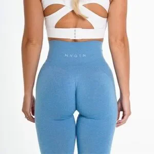 Chic sky blue leggings. Ideal for gym or lounging. Snug and flexible.