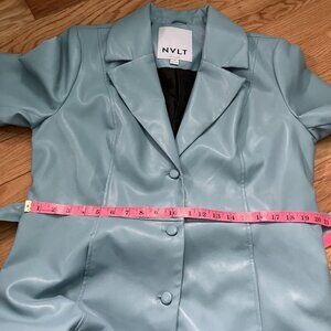 NVLT Vegan Trench Coat Womens L Blue Faux Leather Lined Contemporary