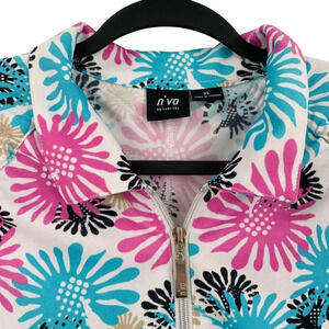 N’VO Golf Top Womens Large Pink Blue White Patterned Athletic Short Sleeve