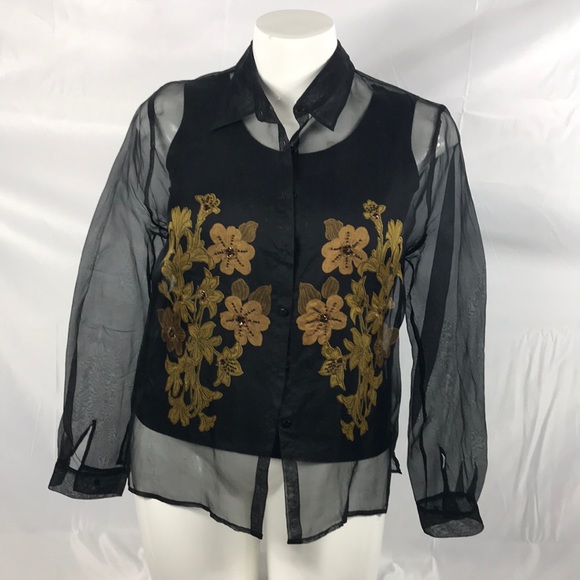 N-Value top Black tank top with black and tan shear blouse with flowers & beads designs Excellent condition Size 44