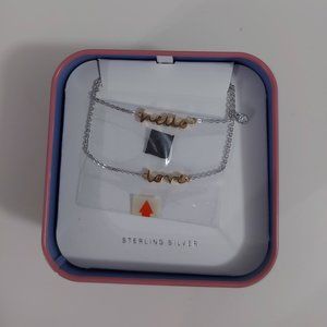 Brand new with box Fossil rose gold and silver "Hello Love" double layer necklace. The necklace is made out of sterling silver. Comes with metal box, there may be some minor dings or scratches on exterior of the box.