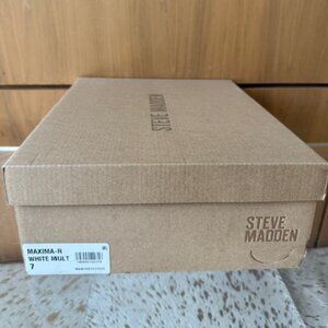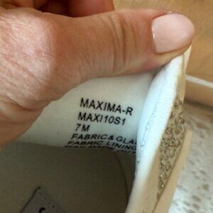 These are a pair of brand new in box Steve Madden Maxima white rhinestone sneakers, in size 7. You can find them on amazon right now for $70.