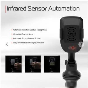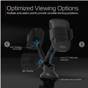 Take wireless charging on the road with Inteligrip–a multipurpose smartphone mount that safely adheres to windshields and dashboards with a secure suction base. Equipped with infrared motion detection, it automatically grips your phone with a custom fit to hold it in place while delivering a wireless charge to compatible devices. Designed with a rubberized, anti-slip holster, and an adjustable, rotating arm, you always get the perfect angles for convenient, hands-free viewing and charging while on the road.