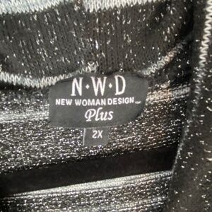 NWD New Woman Design Cowl Neck Half Sleeve Sweater 2X Black c/ Glitter Threading