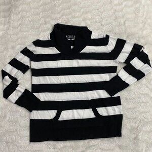 NWD Sweater Womens Size XL Black/White 100% Acrylic Striped Pullover Mock Neck