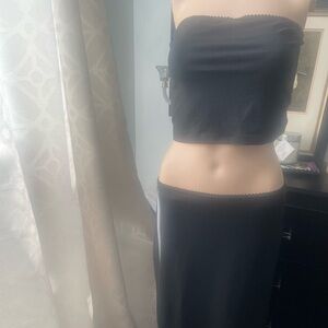 NWNT Stylish black two-piece set featuring a crop top and long skirt. Perfect for a chic look. With no visible signs of flaws. With stretch
