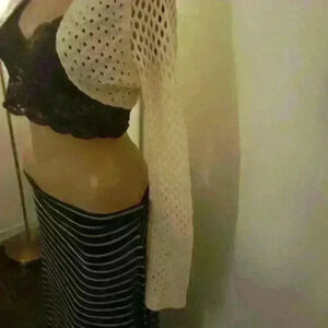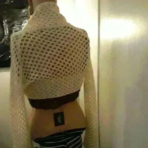 NWNT Oxygen crochet cream acrylic beach coverup shrug long sleeve sweater 1
