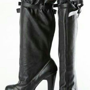 I wore these twice.they are authentic leather,slightly scruffed, but in great shape Marc Jacobs limited edition slouchy boots.great for winter and spring.they are very boho and also piratey,you will love them.ps..just so you know, i dont have the original box anymore/dust bag.for those who care about that.its a european 39 and half size but I wear a 8.5/9 in us sizes and it fits me.their rare Marc by Marc Jacobs Black Leather Slouchy Boots and I'm only selling them because I raising money for a loved ones medications and dr bills,otherwise I wouldnt.im open to reasonable offers,thanks