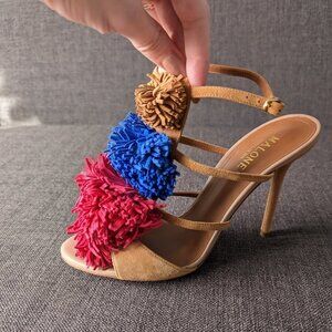 NWOB Malone Souliers Sherry Pompom Fringe Suede Heeled Sandals