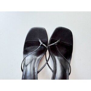 NWOB RAYE Kimme Black Leather Thong Stiletto Heel Sandals, Size 5.5
