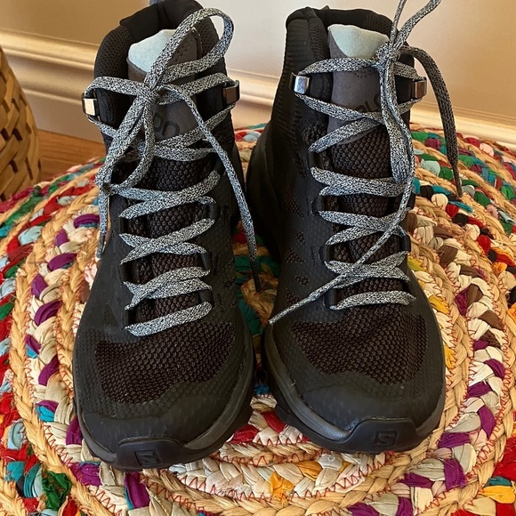 NWOB Salomon Contagrip Black Hiking Boots with Gray Laces