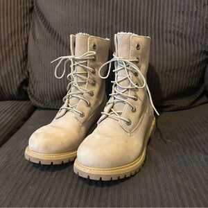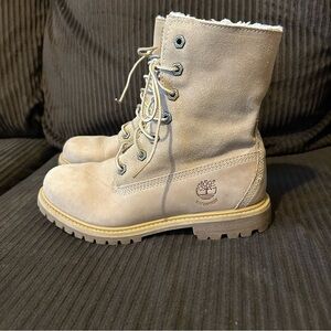 NWOB Timberland Tan Suede Teddy Fleece Leather Lace Up Boots | Women’s Size 6