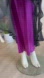 Bias cut draping sheath is comprised of purple satin under dress and sheer black silk overlay.