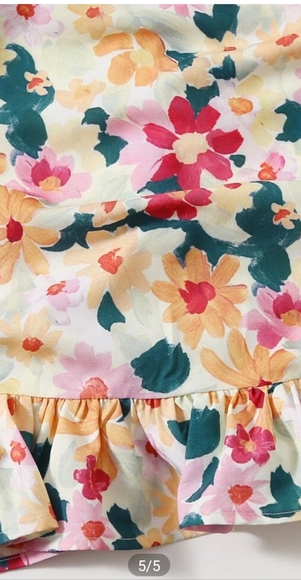 🐯 NWOT, allover multicolored floral print 2 piece set from shein. marked as a size large. there is no stretch to this material. zipper in the back of the skirt and the top has ties in the front (chest) and the straps.