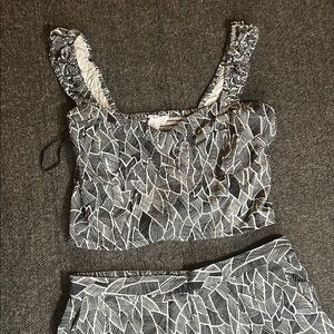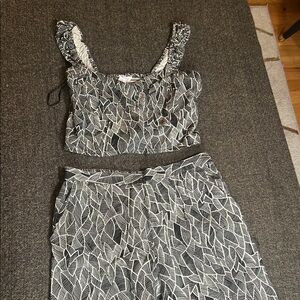 Brand new. Bought and never worn. Adotable set of cropped tank with wide leg high-rise pants in a botanical leaf print. Dog friendly, smoke free home.