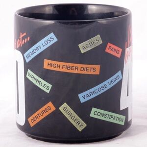 This is a funny, humorous "aging" coffee mug ideal for 40th birthday or anyone that age.