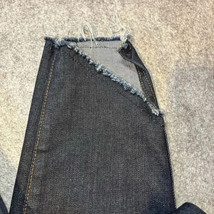 These are NWOT's but have been washed. . They are a great dark wash that can easily be dressed up or dressed down. They have a great, unique angle cut detail on the hems.