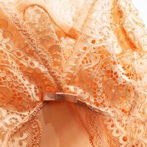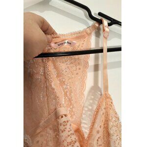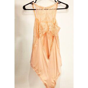 New without tags AMAZING 90's/ Y2K Vintage La Vie en Rose Lace & Bow Details Teddy Backless Cut Out with Adjustable Straps in Salmon Pink/ Coral/ Peach Color